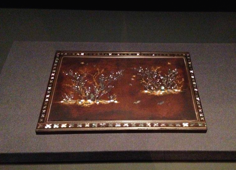 학과 모란이 상감기법으로 새겨진 장구, 어떤 소리가 날까? 은은한 색과 문양이 정말 아름답다.