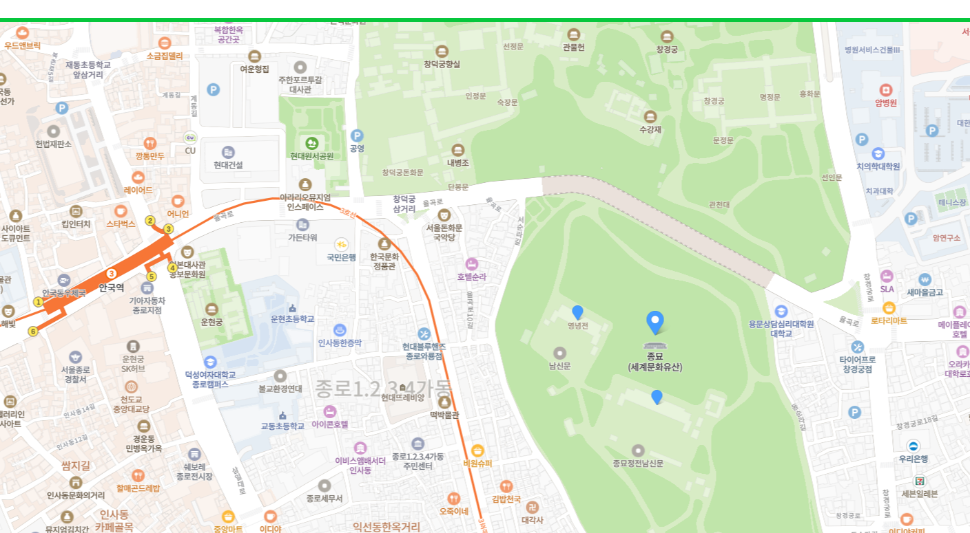 안국역 4번출구로 나와서 종묘쪽으로 걷다보면 종묘 돌담이 보이는데요. 거기를 서순라길이라고 합니다.