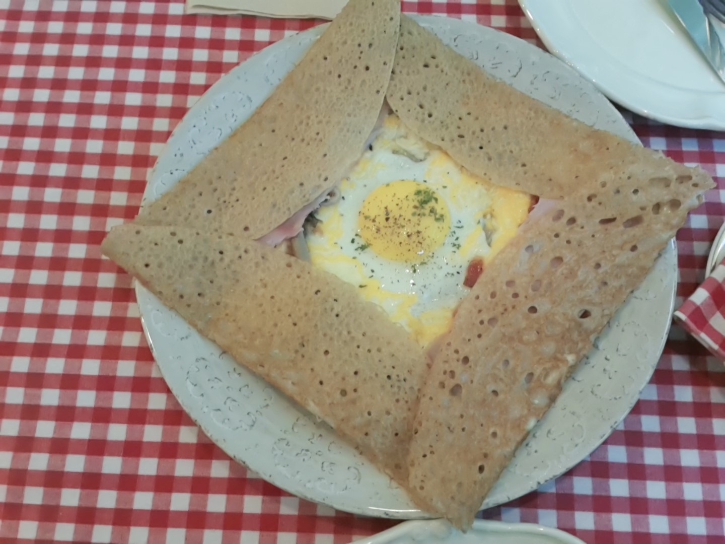 올랄라파리 콤비네이션 - 프랑스 메밀 갈레트! 100% 봉평 메밀만의 구수함에 햄, 베이컨, 계란, 4가지 치즈가 조화롭게 어울리는 음식이었어요!
