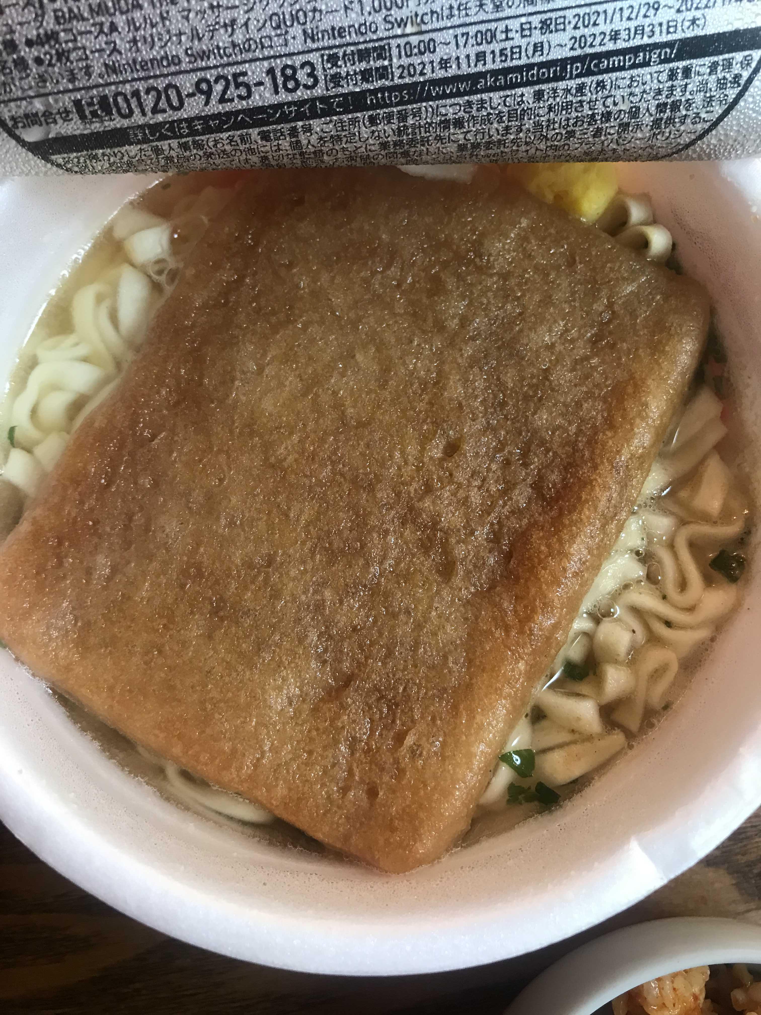 유부우동 닛신 것. 닛신 유부는 달더라두요. 유부는 마루짱 것이 더 맛있습니다.