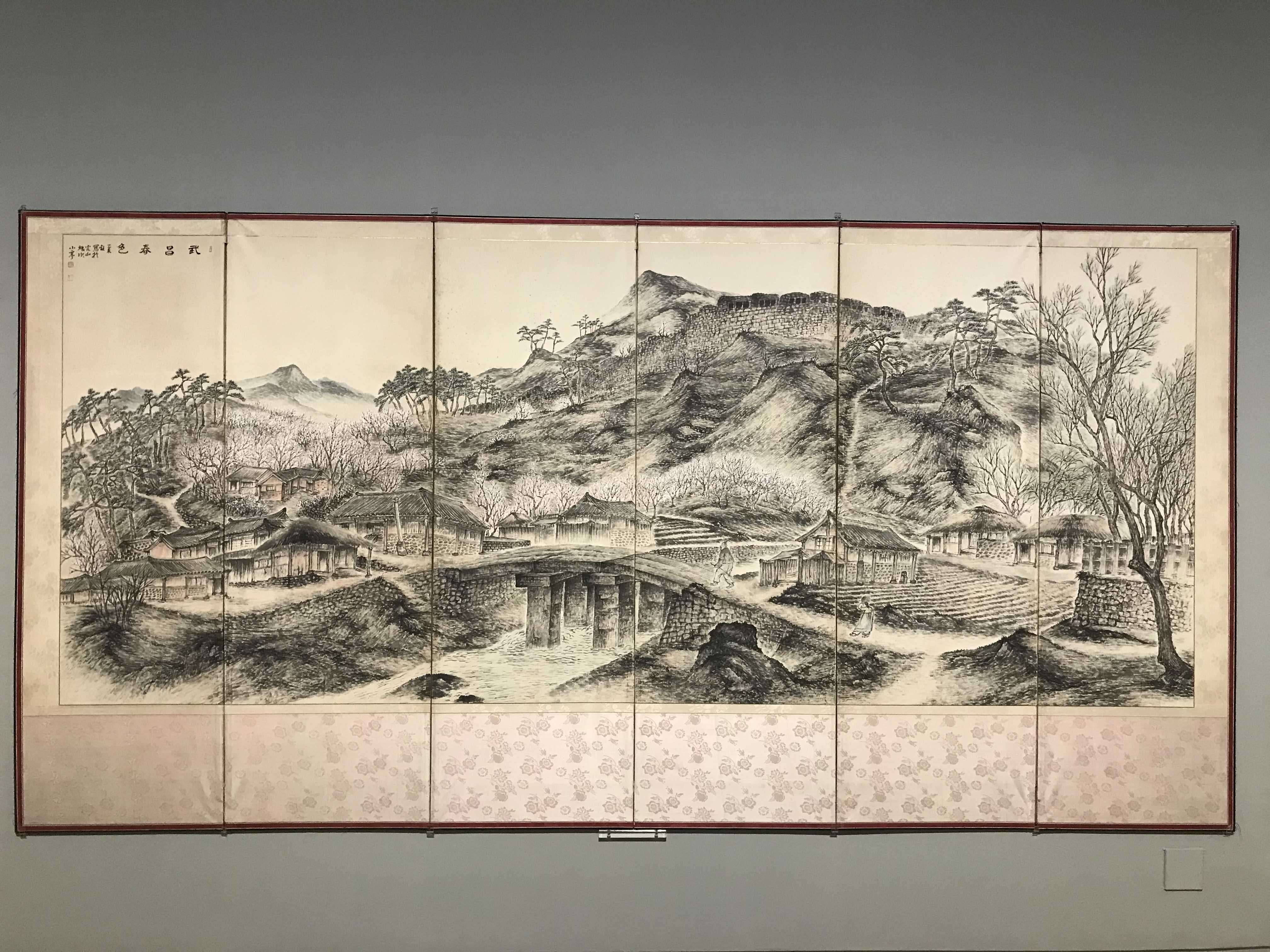 변관식, 무창춘색, 1955 / 종이에 수묵채색, 6폭 병풍