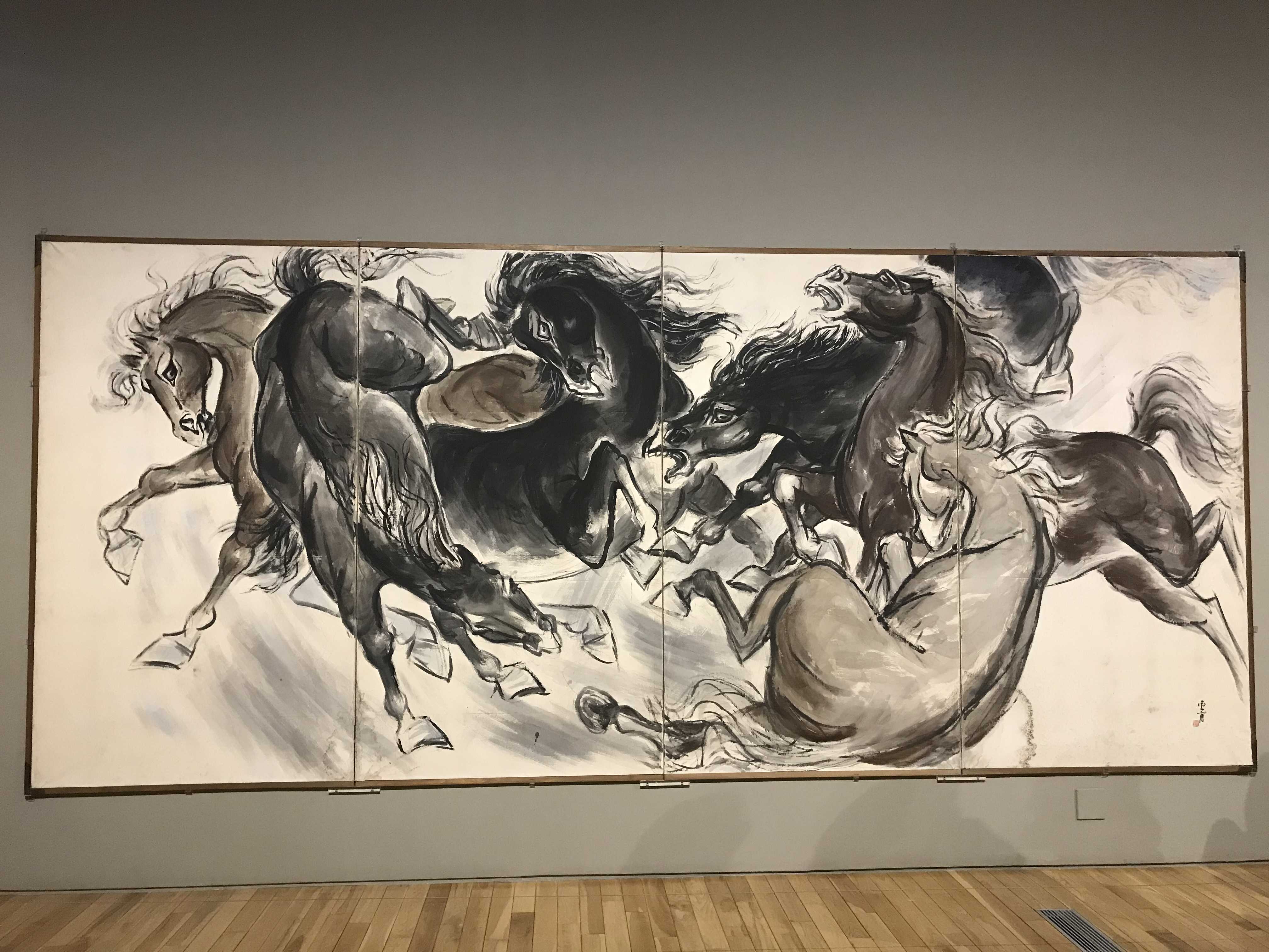 김기창, 군마도, 1955 / 종이에 수묵채색