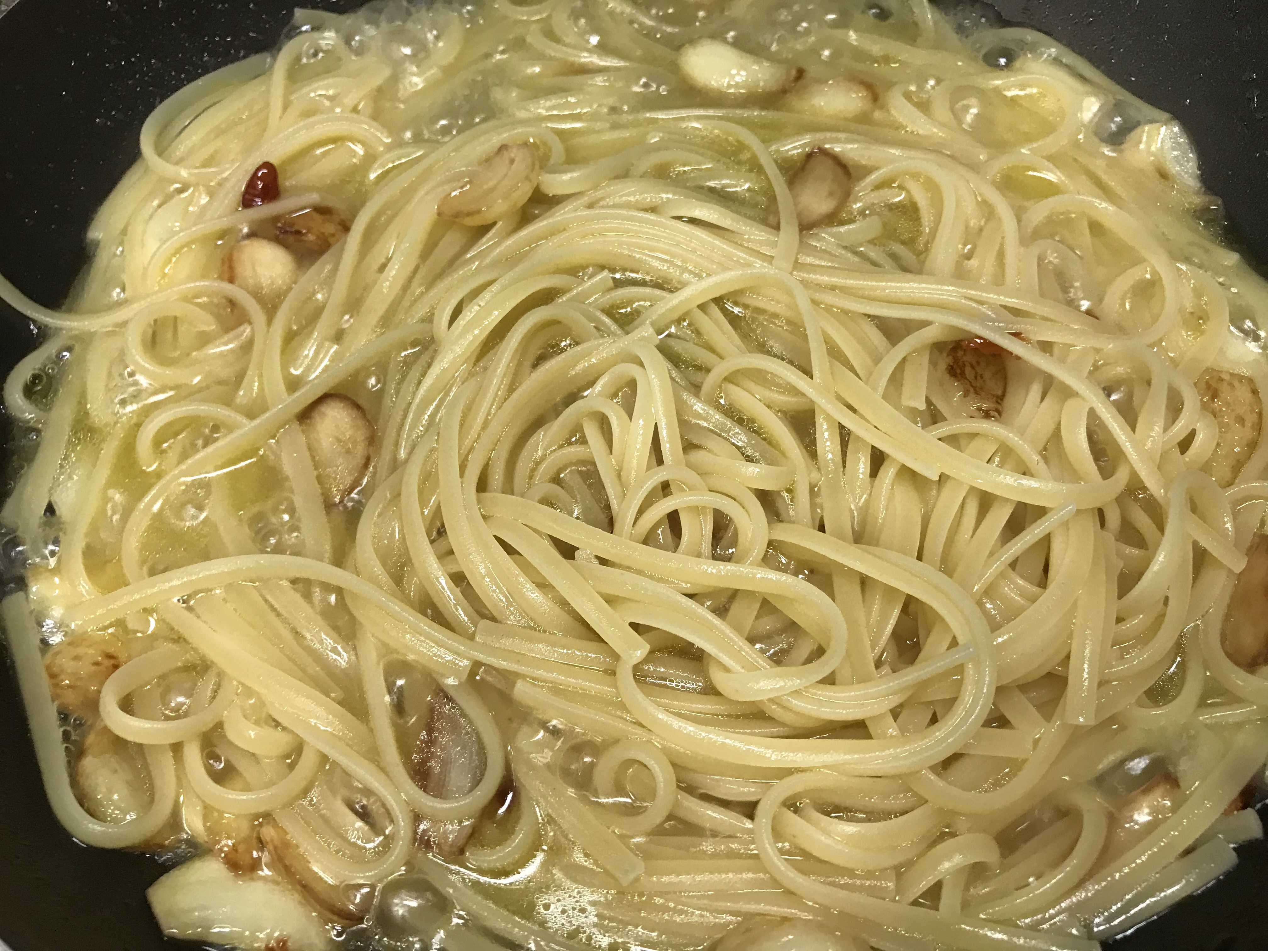 - 준비물 : 스파게티면(1인분), 마늘5-6 알, 페퍼론치노 2알, 올리브유(버진), 이태리파슬리, 치즈(파마산 혹은 페코리노 로마노 등), 소금, 후추