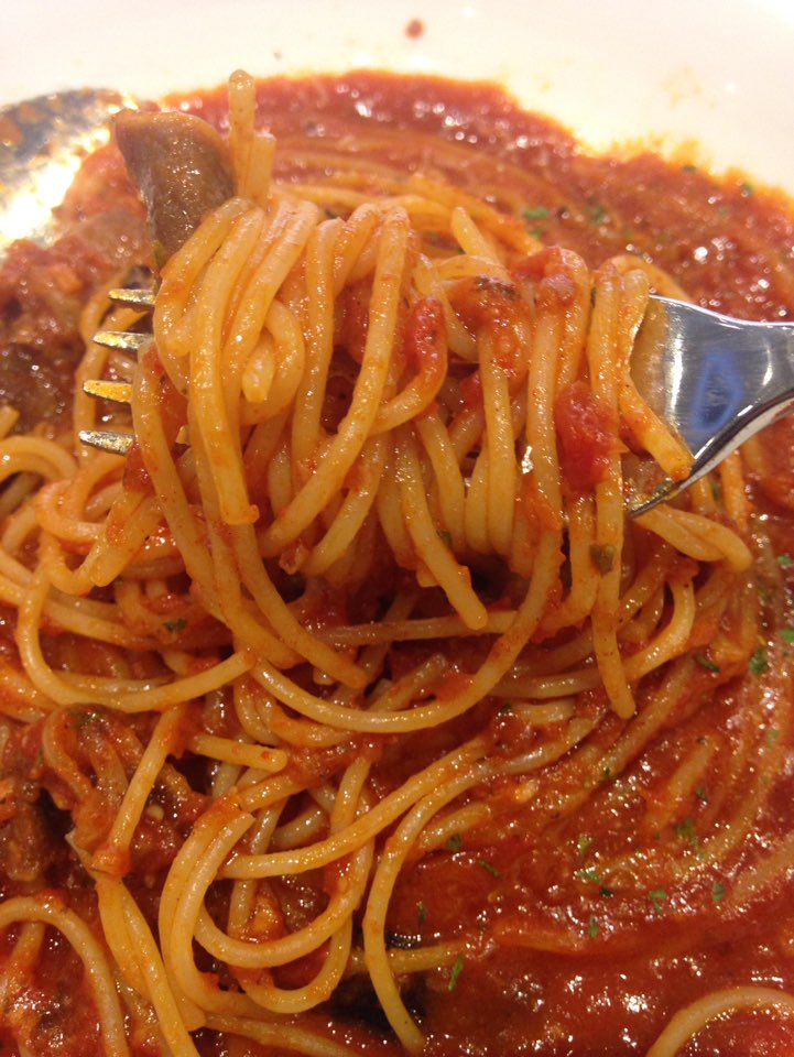 처음 비쥬얼은 보자마자 양이 적당하다라는 생각이 들었어요. 면발은 얇은 스파게티면이었는데, 굉장히 잘 어울렸던 것 같아요. 개인적으로 페투치니는 크림소스에 어울린다고 생각하거든요. 요런 면들은 토마토소스에 딱입니다. 한 입 말아서 입에 넣었더니 드는 생각은 '괜찮네!'였어요. 일단 백종원님이 운영하시는 곳이라서 그런지 맛이 없는 것은 없더라구요. 고기도 가지도 곁들여서 잘 삶아진 파스타를 돌돌 말아서 입에 넣으니 참 맛났습니다. 그러면서 크림파스타 맛도 궁금해지더라구요. 다음에는 크림파스타를 한 번 와서 먹어보려구요.