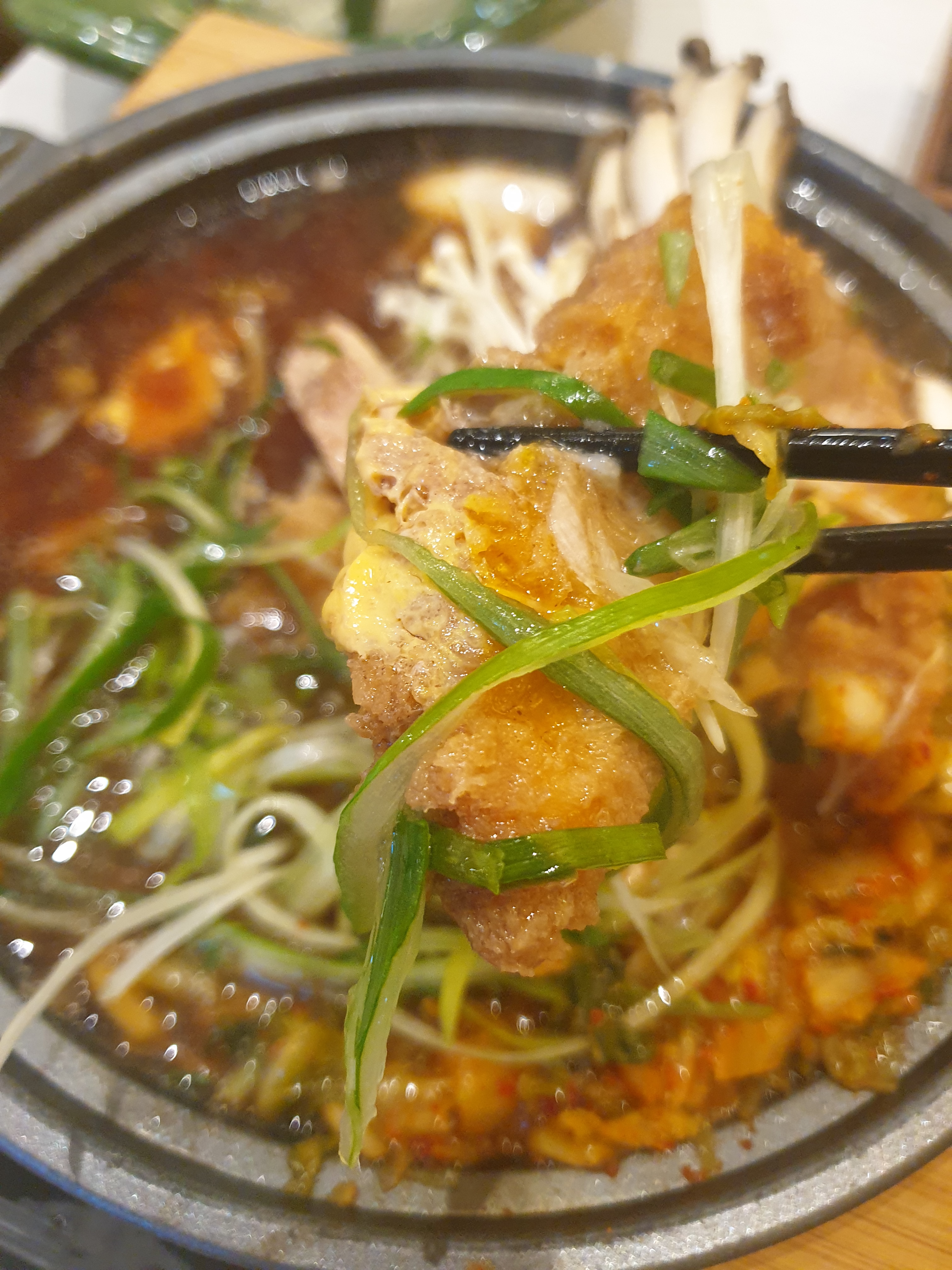 오늘은 조금 새로운 메뉴를 도전해봤습니다 . 명란치즈카츠와 김치 카츠 나베를 도전해봤어요