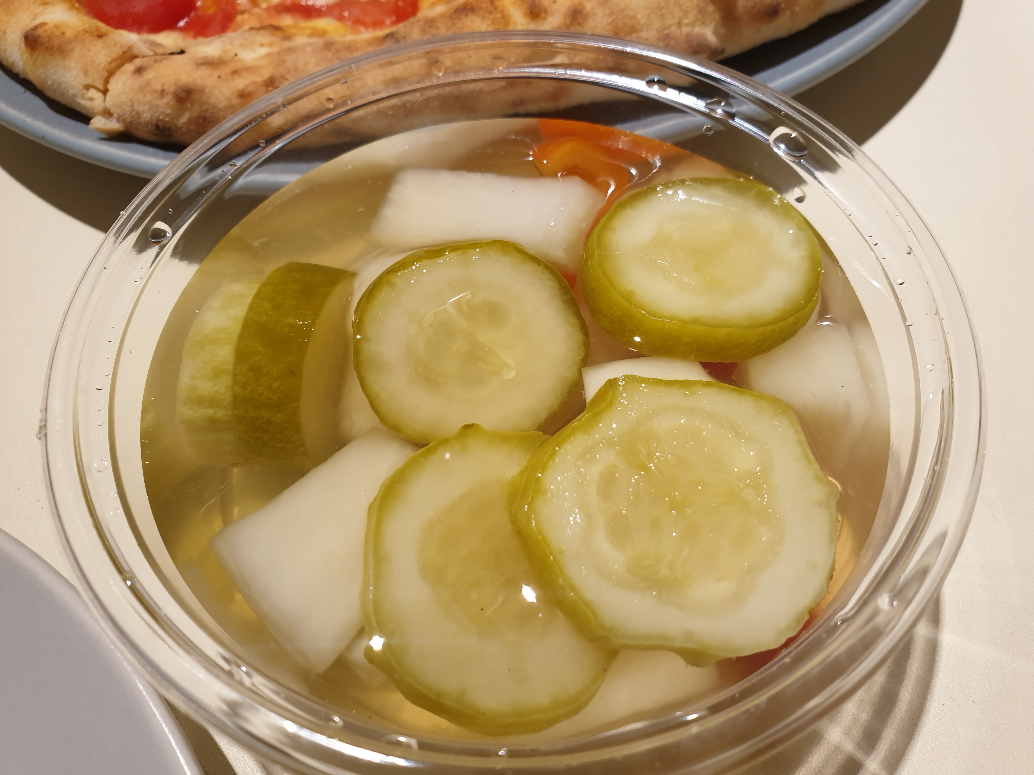 피클이 정말 맛있었어요. 무료로 제공되지는 않고, 천원에 구매할 수 있어요. 저는 피클을 좋아해서, 하마터면 두 개 시킬 뻔 했어요 ! 조금 매콤하게 먹고 싶어서 핫소스가 있나 여쭤봤는데요, 이탈리아 피자는 핫소스에 안 먹기 때문에 없다고 하시더라구요. ㅎㅎ