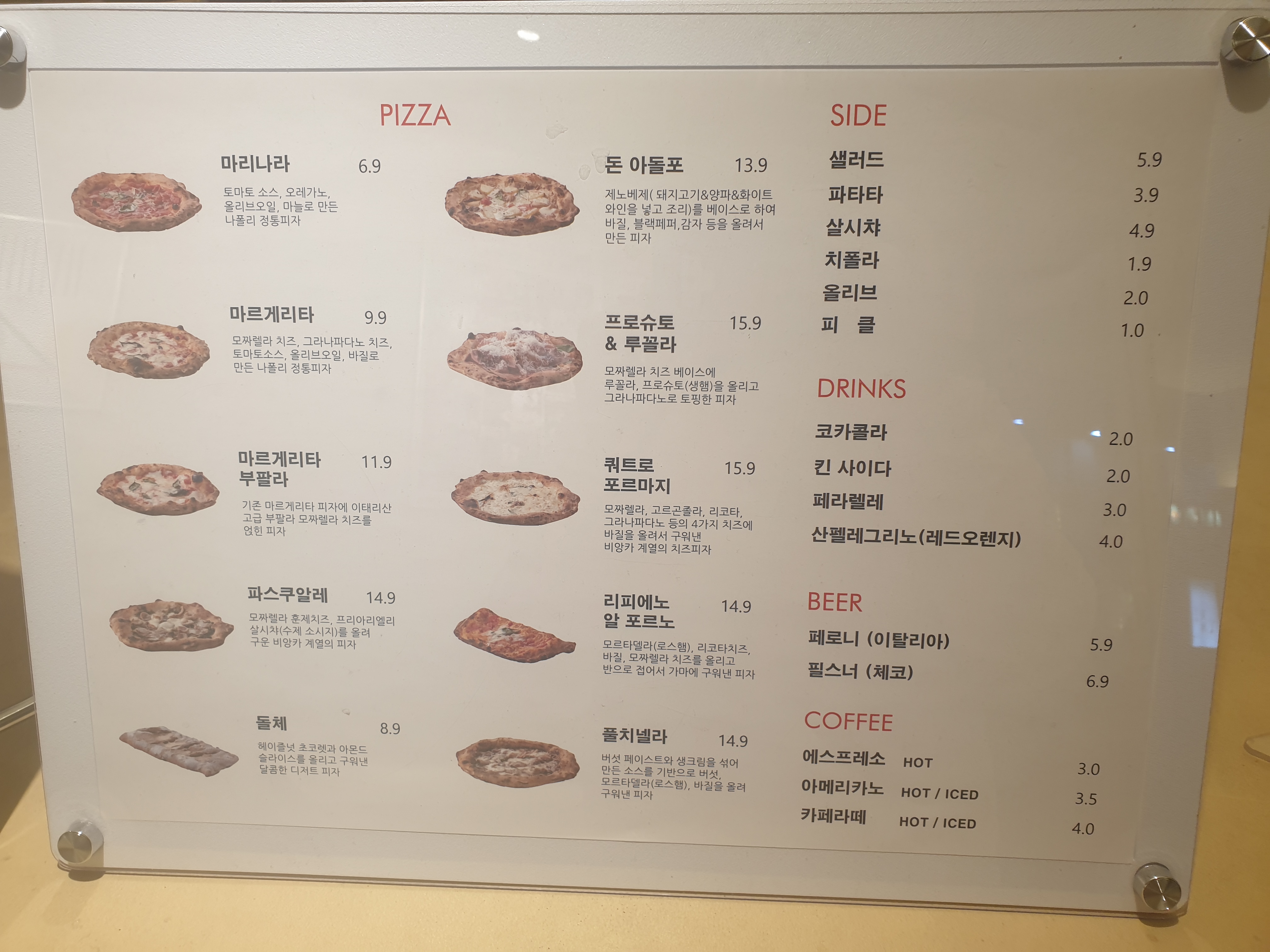 * 메뉴 : 대표 마르게리타 - 9,900원 / 프로슈또 &루꼴라 - 15,900원