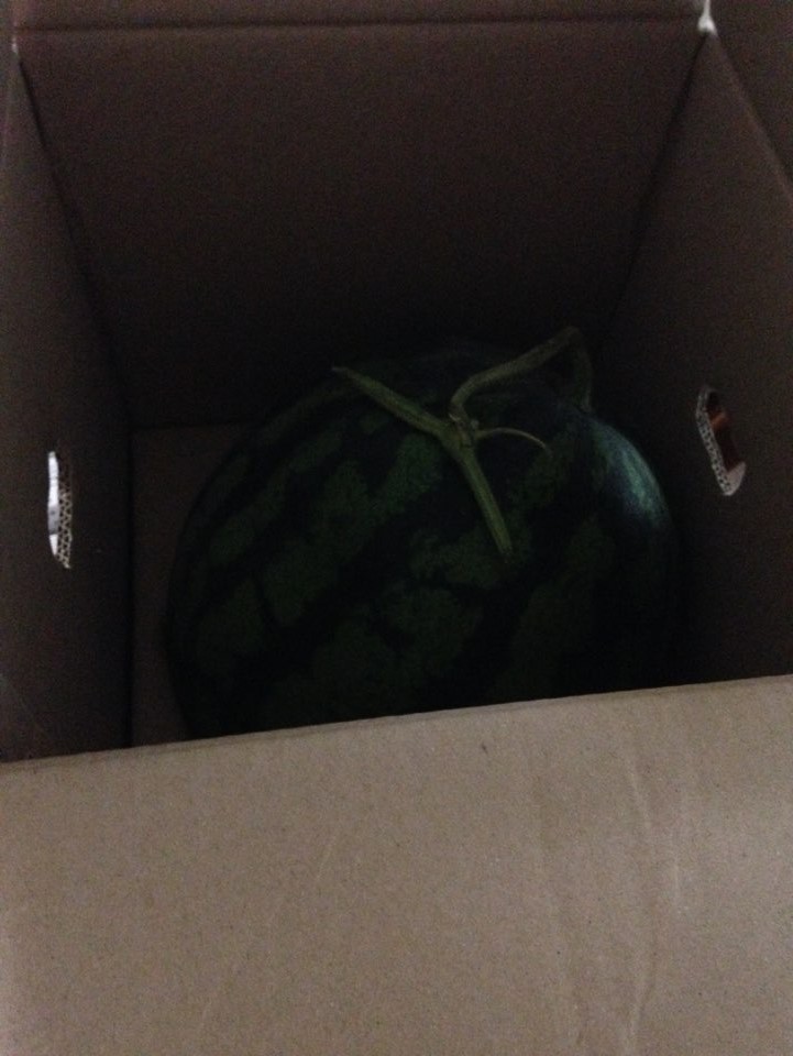 상자 속 수박이 빼꼼 인사를 합니다.