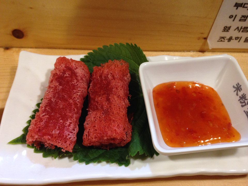 미분당에 빠지지 않아야 할 메뉴가 있다면 고구마 짜조이다. 저 바삭하고 얇은 튀김을 살짝 베어물면, 안에 노란 고구마가 가득하다. 칠리 소스에 찍어먹으면 달달매콤새콤하니 참 맛난다!